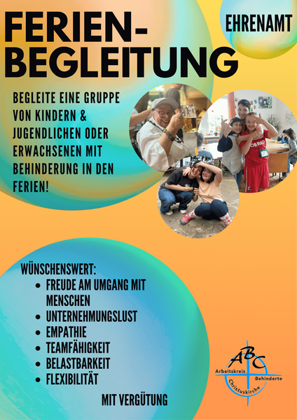 Du verbringst gerne Zeit mit einer Gruppe mit Kindern & Jugendlichen oder mit Erwachsenen und möchtest ihnen eine schöne und erlebnisreiche Ferienzeit ermöglichen? Dann engagiere dich in der Ferienbegleitung bei uns!